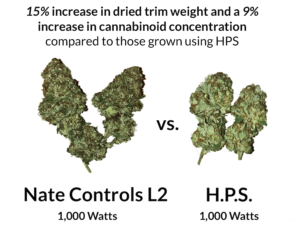 Nate released a new cannabis case study where the L2 Grow Light showed a 15% yield improvement and 9% THC potency boost when used during the flowering phase vs. a 1000W single-ended HPS grow light. This resulted in $1,500 of additional profit per year per light for this Colorado cultivator. The yield increase is expected to be twice as high when the L2 is also used for both the vegetation and flowering phase rather than just for flowering. Click here to download the case study.