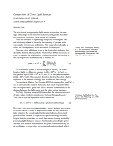 The selection of light source is important because light is the single most important factor on plant growth. No other environmental parameter has as strong an influence. The rate of photosynthesis is driven by the quantity of photons with wavelengths between 400 and 700nm. This document gives detailed information on various grow light sources.